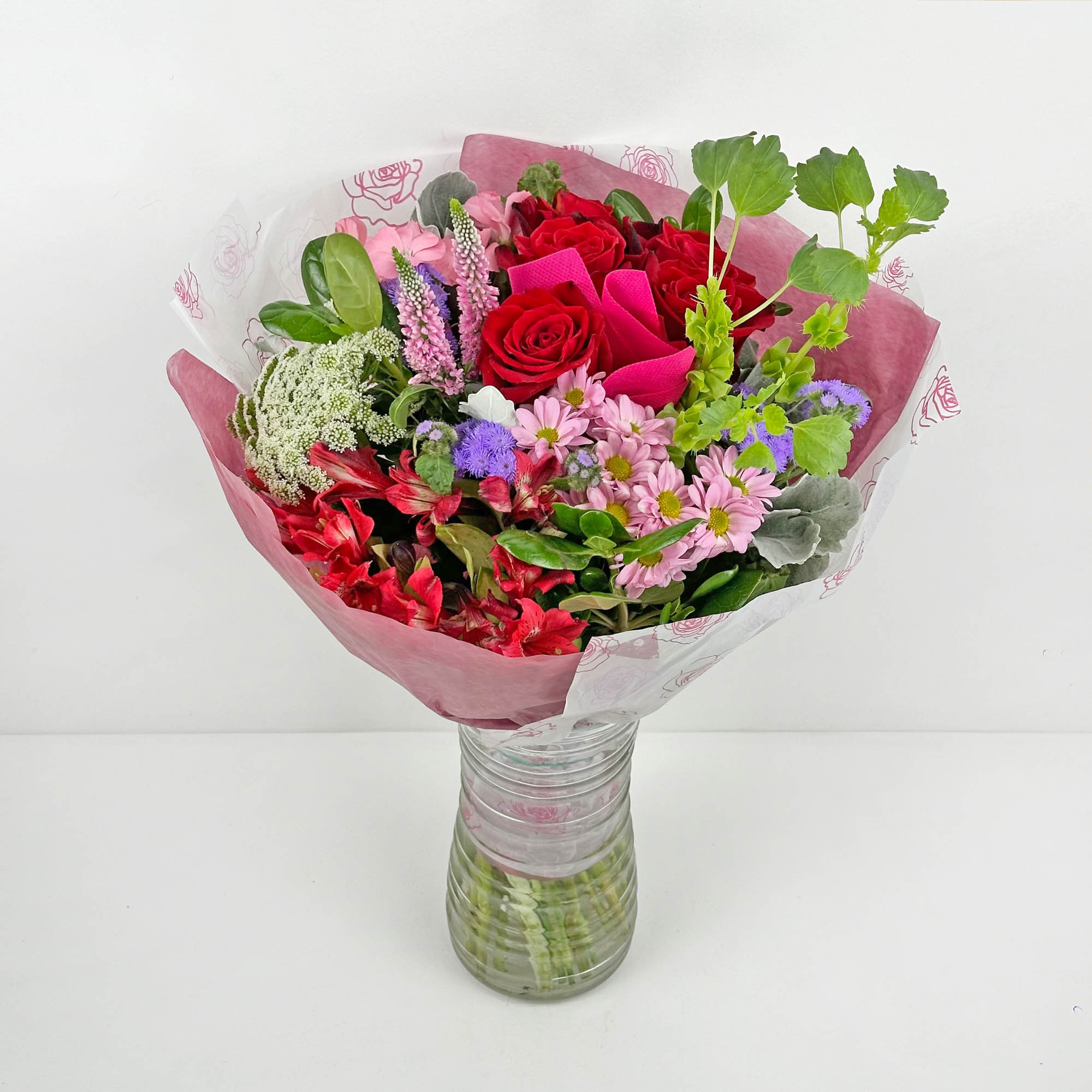 A ready-to-sell bouquet designed for florists and retailers who want a finished product without the assembly time. Each bouquet combines roses with complementary spray flowers and seasonal fillers, wrapped and presentation-ready out of the box. Available in 5 color variations to cover different customer preferences within a single order.