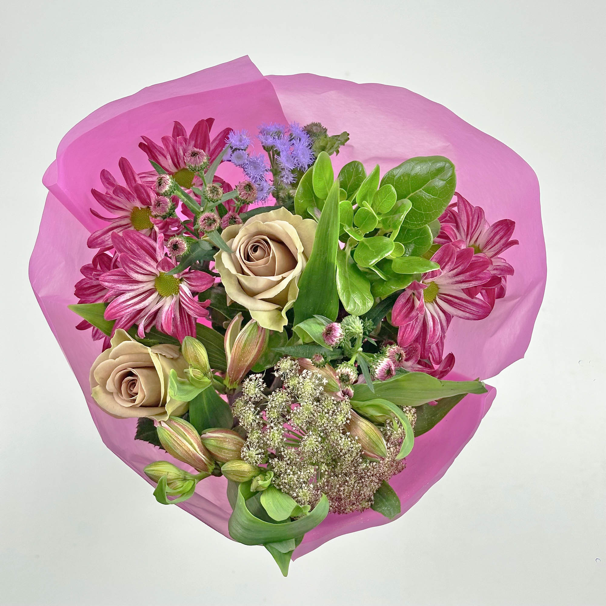 A compact, ready-to-sell bouquet for florists and retailers moving high volume during Mother's Day. Combines roses with spray flowers and fillers, wrapped and presentation-ready out of the box. Six color options allow coverage of different customer preferences within a single order.