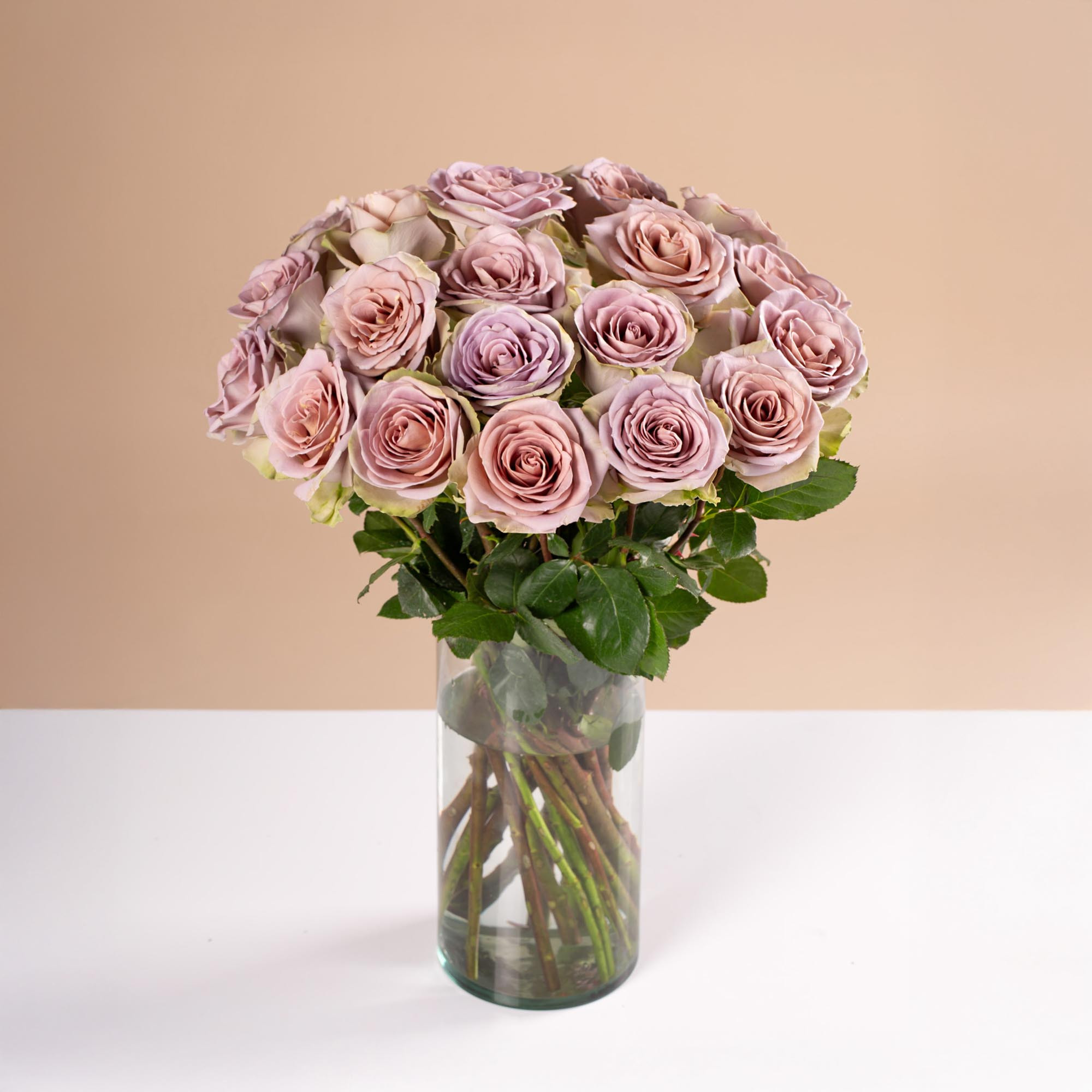 A rare rose with a captivating blend of dusty lavender and beige tones. Amnesia brings a touch of mystery and vintage romance to every design.