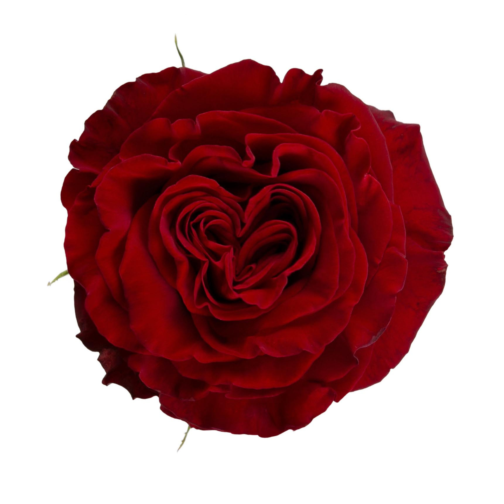 A rich red garden rose with layered petals and a romantic heart-shaped center. Hearts adds emotion and depth to any floral design.